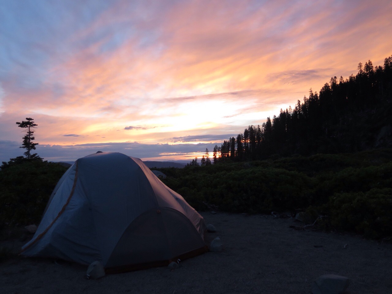 We stopped early, awkwardly set up our new tent in the rain, and slept. A fine “welcome back.”